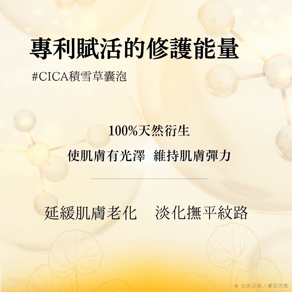 積雪草囊泡: 舒緩乾燥不適,維持膚況柔順平和。