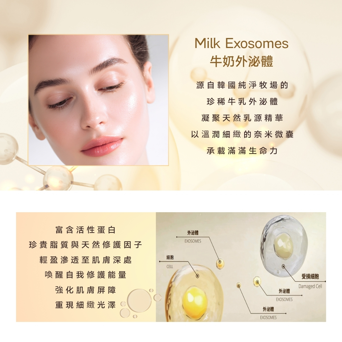 牛奶外泌體 × 益生菌胞外囊泡,喚醒肌膚再生能量。
