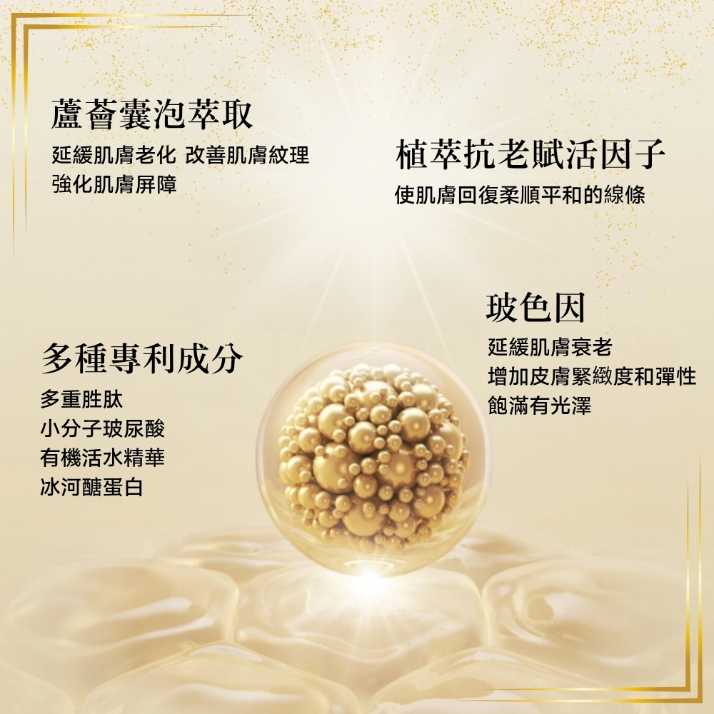 重啟年輕光采,喚醒肌膚彈潤與緊緻。